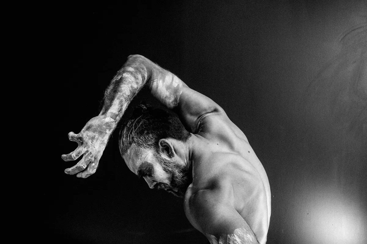 The recurring theme in the performance MAN is the maximum use of simple means. The dancer has only a small stool as a partner – a prop that has been given great symbolic value, and which Sudesh himself has described as follows: “It is sometimes a toy, a person, a companion. To begin with it is a little too small, but then we use it in a way that it grows into my body, or my body adjust or melt into it. It is sometimes very modern and other times very ancient. From prison to temple, materialism and spirituality, body and soul”